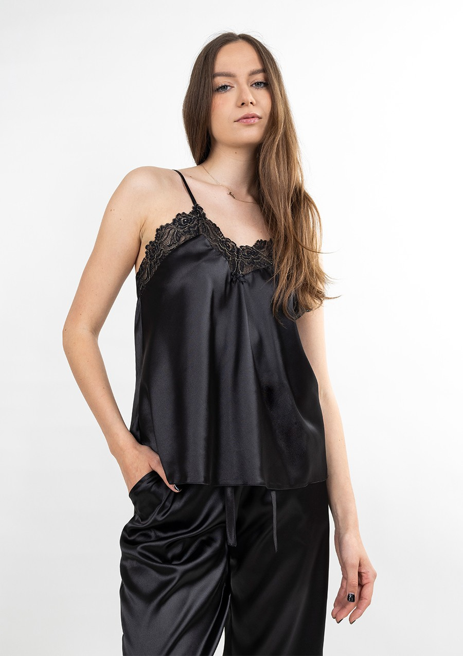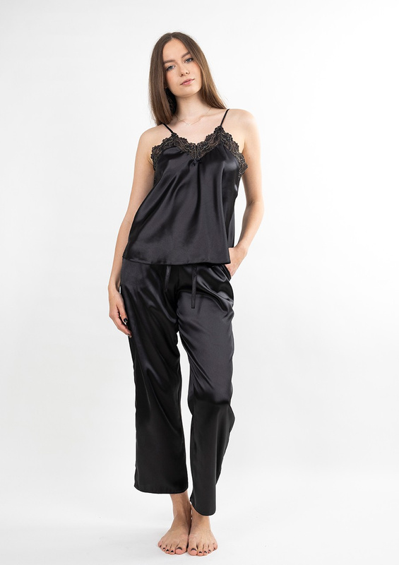 Satynowa piżamka, komplet Tila z koronką czarny Dkaren