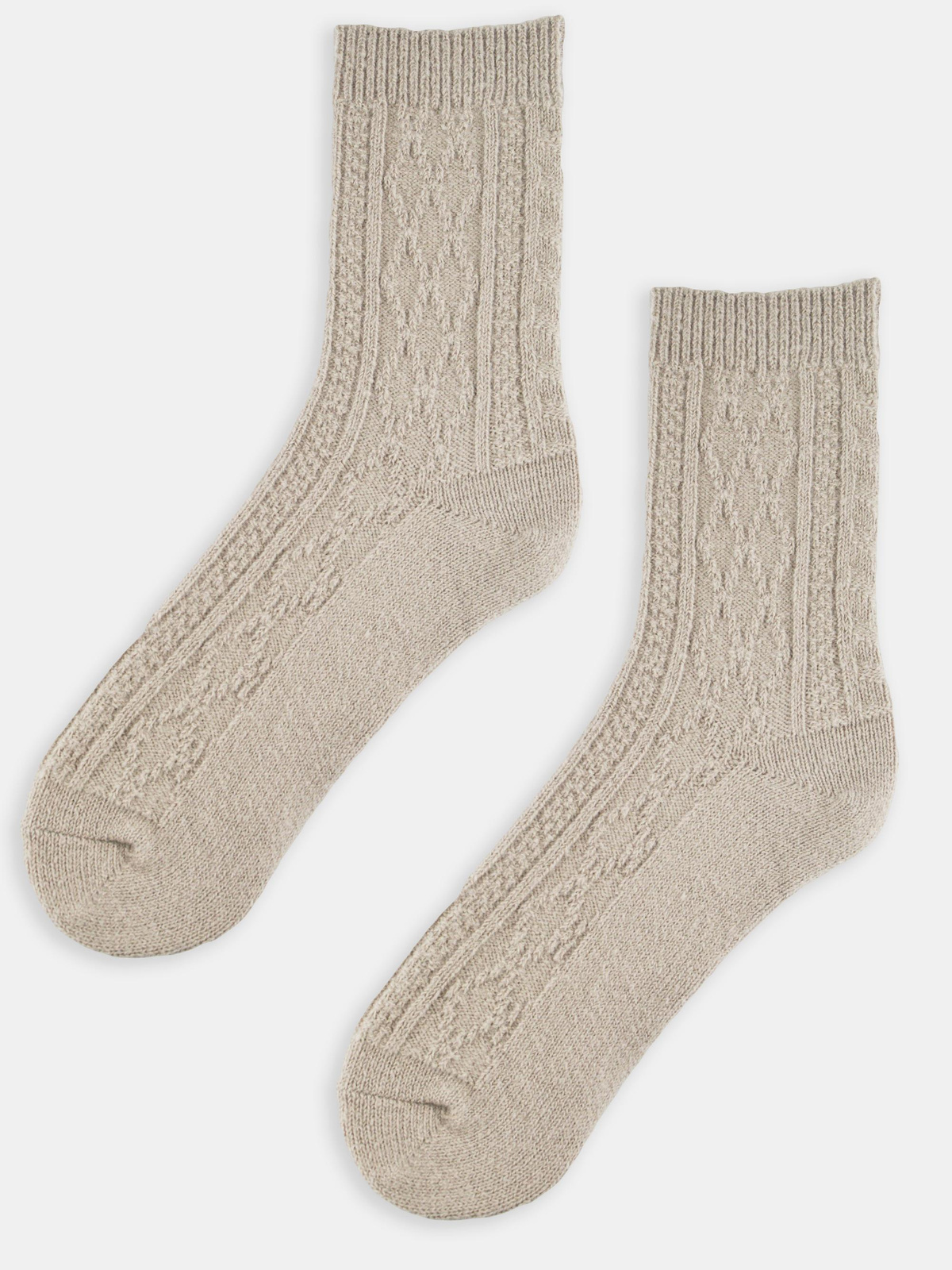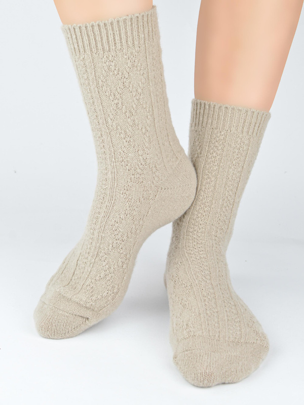 Słodkie skarpety damskie romby, ala sweterek z prawdziwą wełną SB135 beż - Noviti