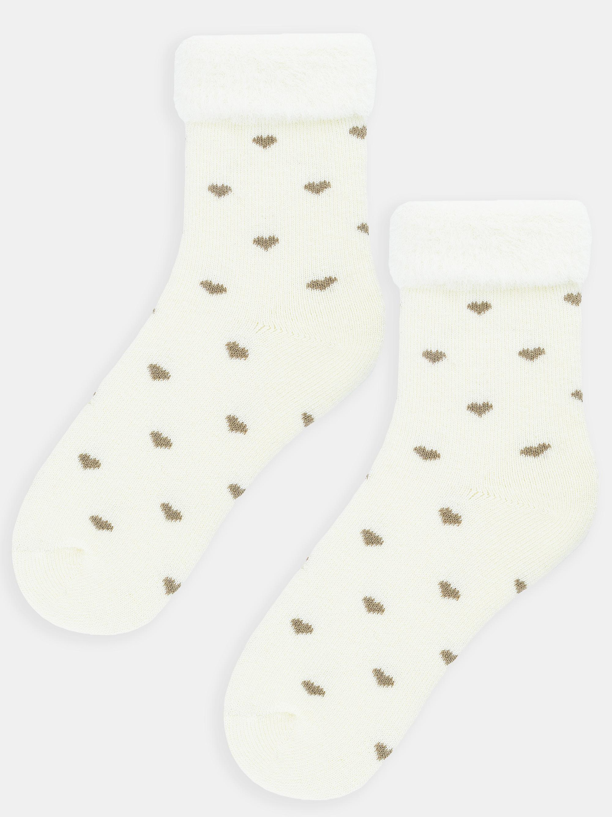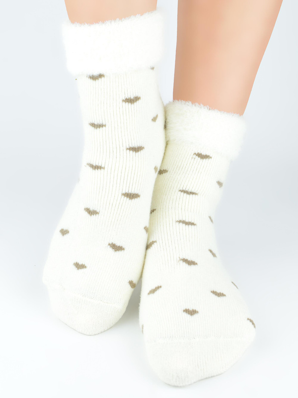 Słodkie skarpetki damskie w serca z prawdziwą wełną SB137 ecru - Noviti