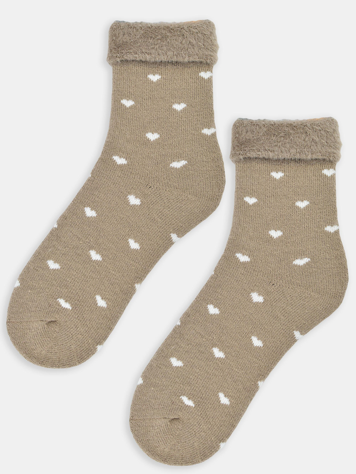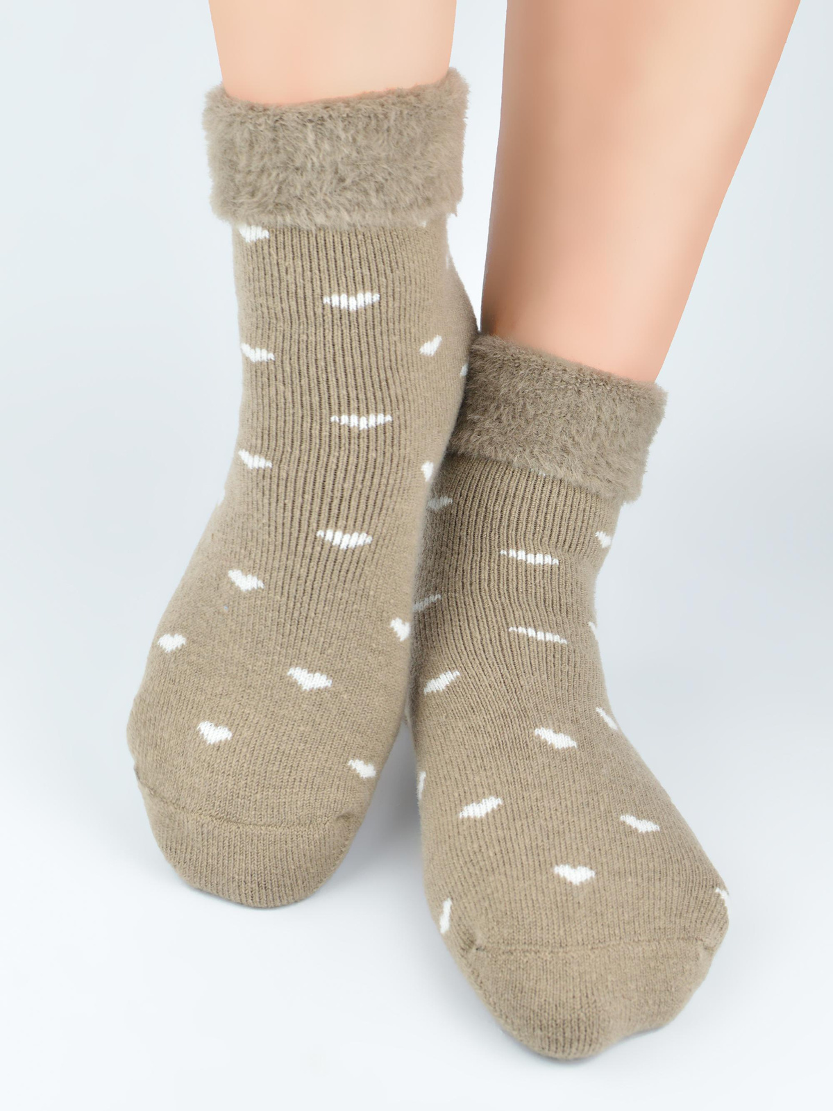 Słodkie skarpetki damskie w serca z prawdziwą wełną SB137 beż - Noviti