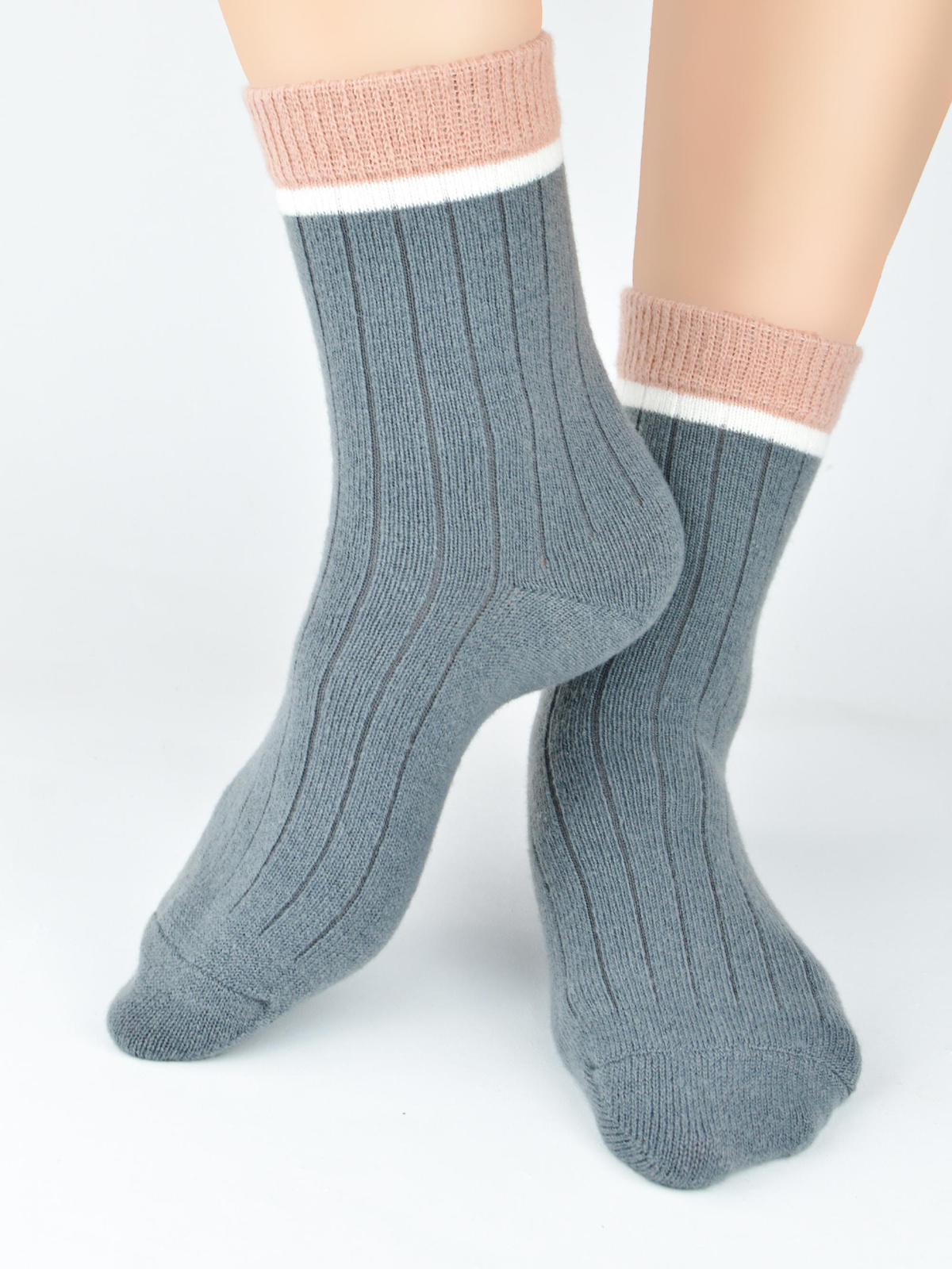 Skarpety damskie z wełną mix 6 par SB 139 tonacja szaro- różowa - Noviti