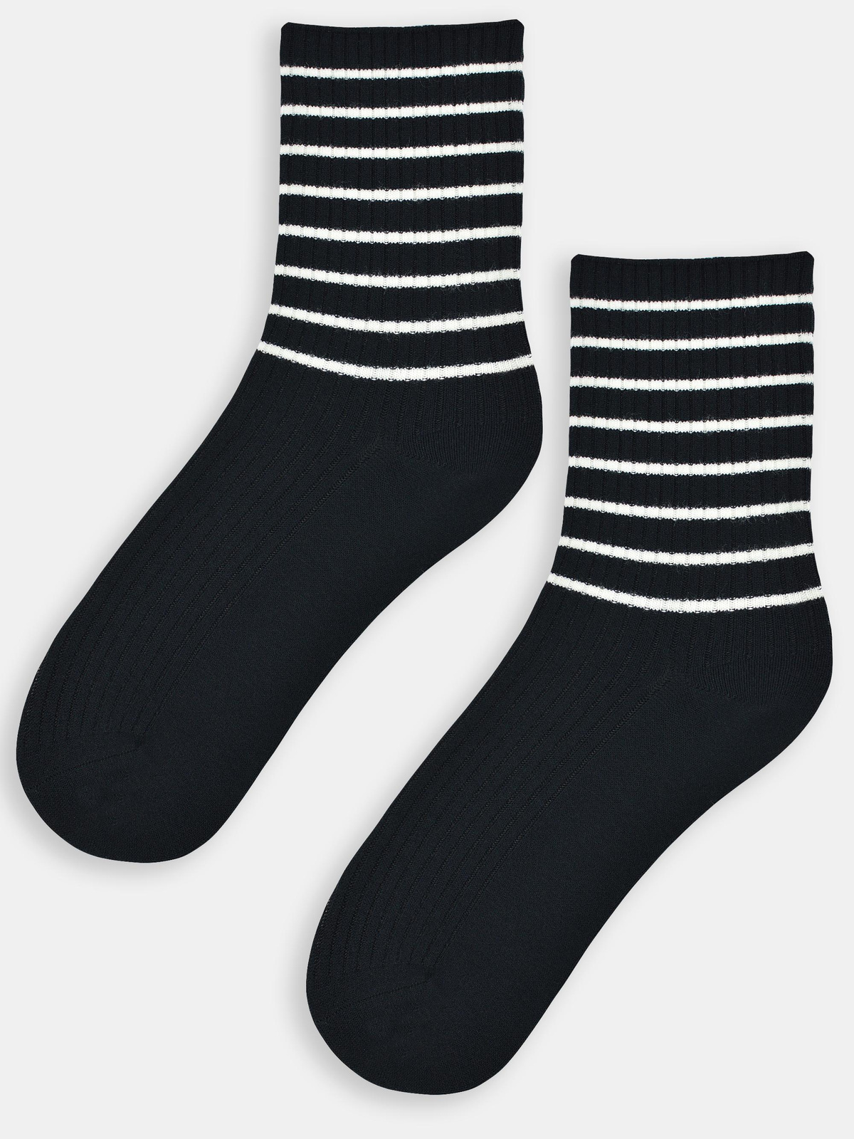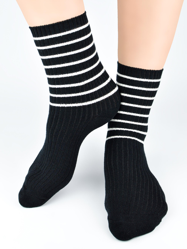 Skarpety damskie z wełną w paski SB140 czarne - Noviti