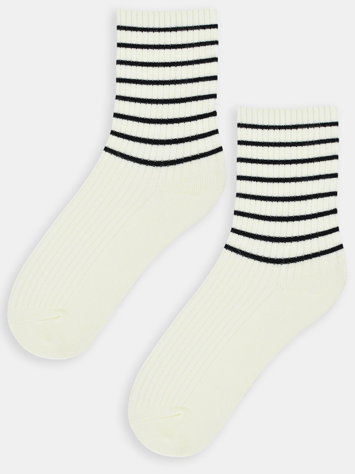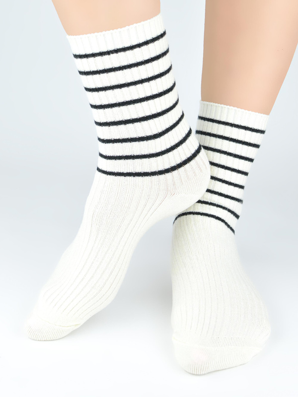 Skarpety damskie z wełną w paski SB140 ecru - Noviti