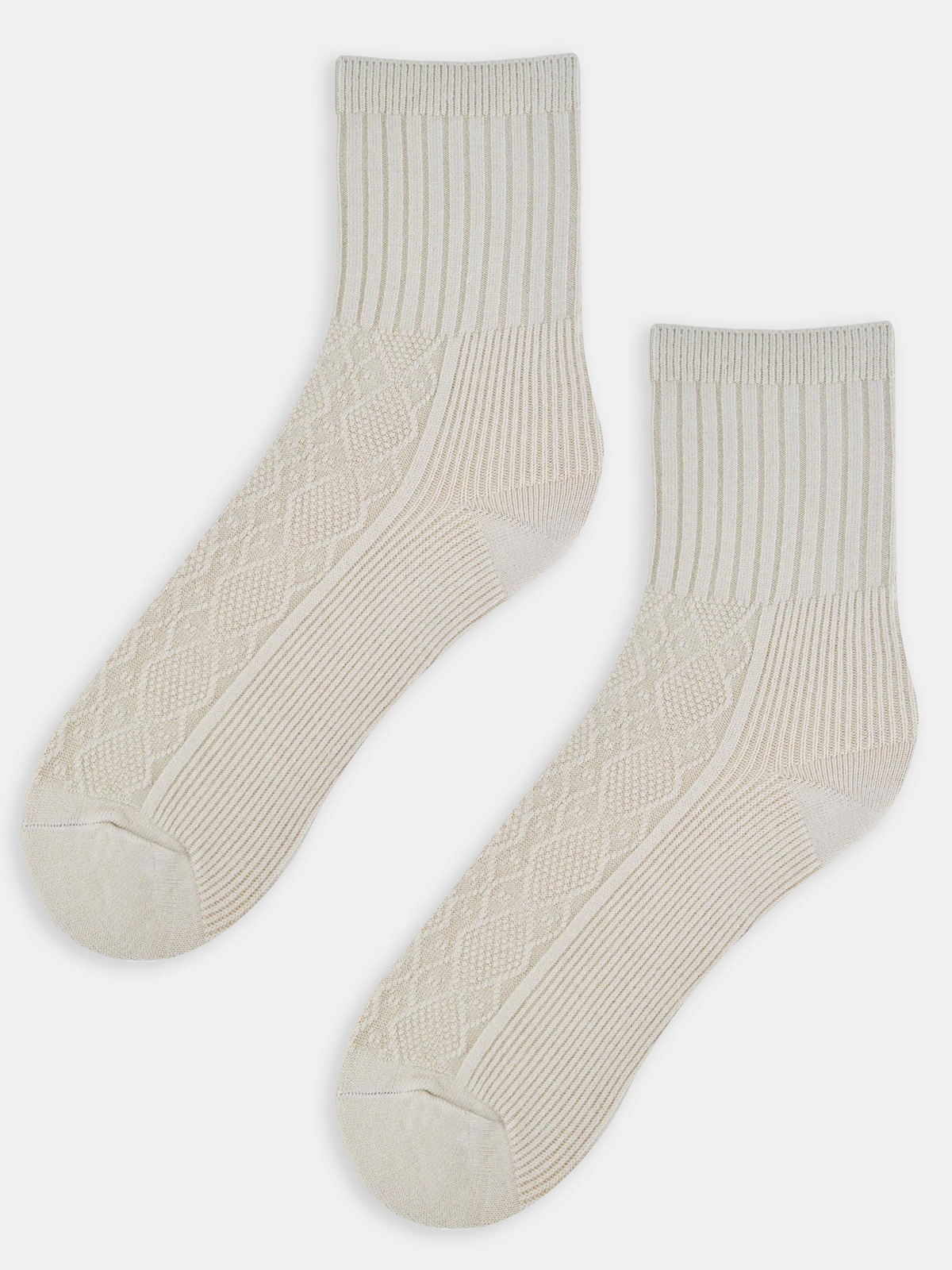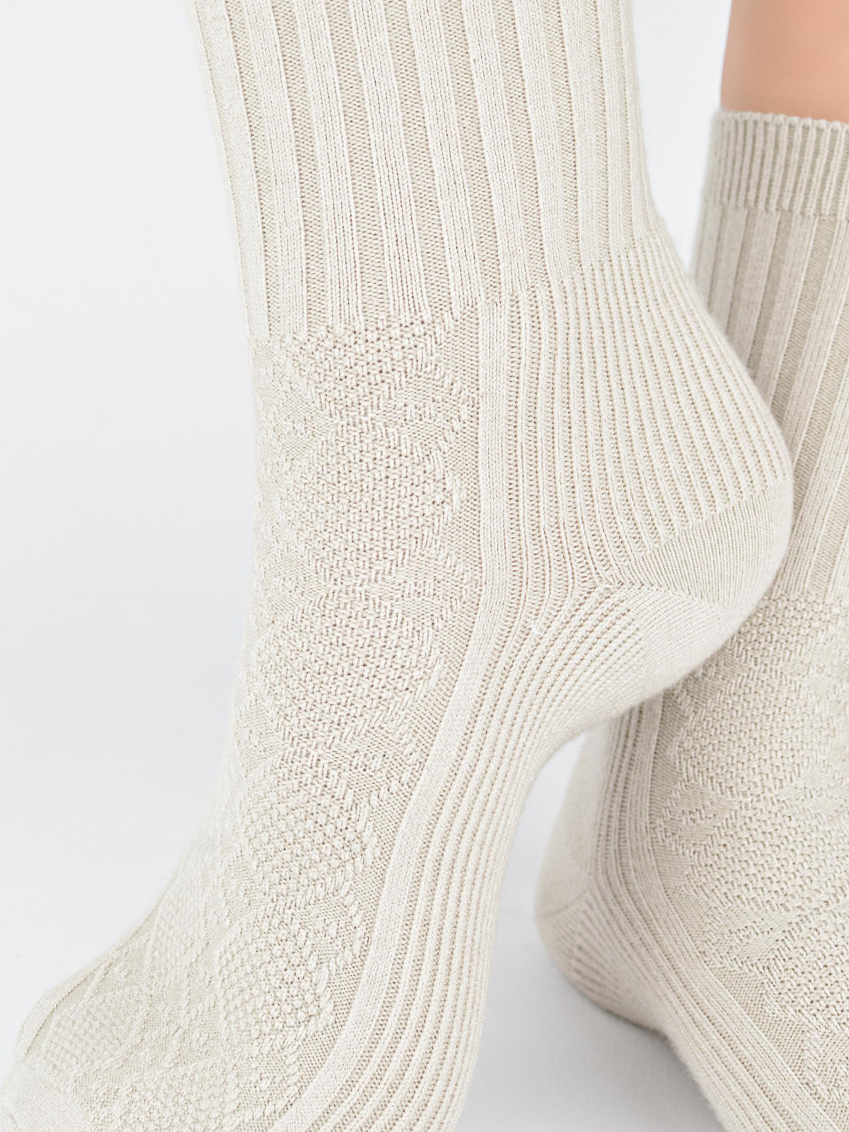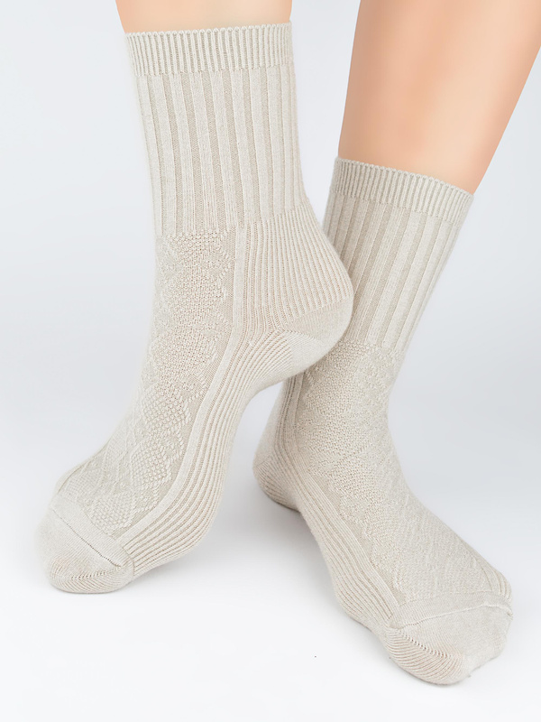 Skarpety damskie z wełną w prążek SB142 beżowe - Noviti