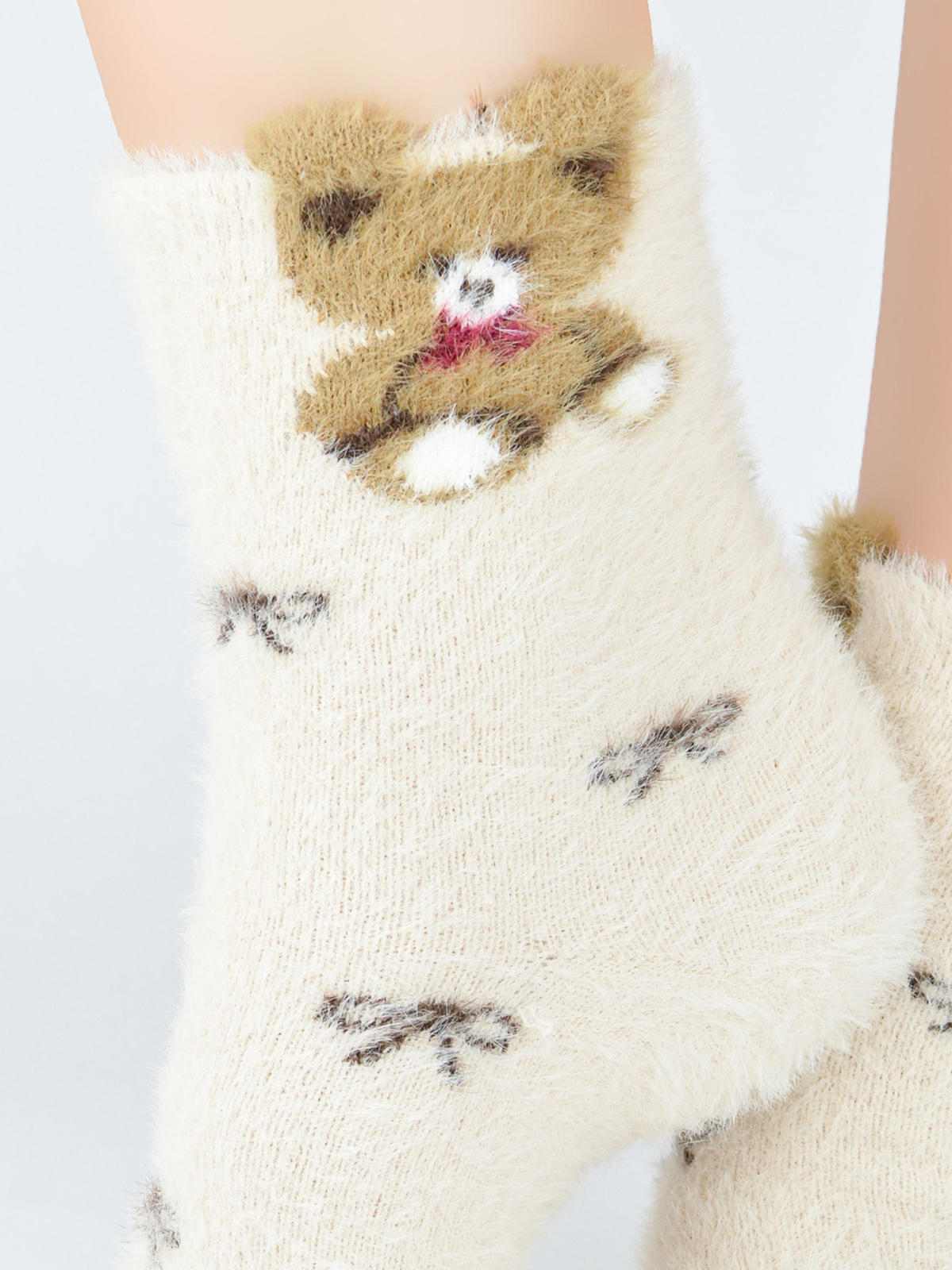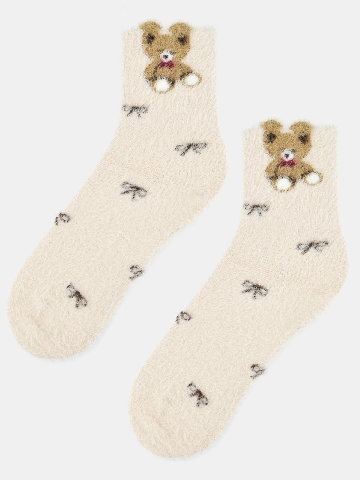 - Puchate, słodkie skarpetki z misiakiem. Cieplutkie urocze skarpetki damskie.