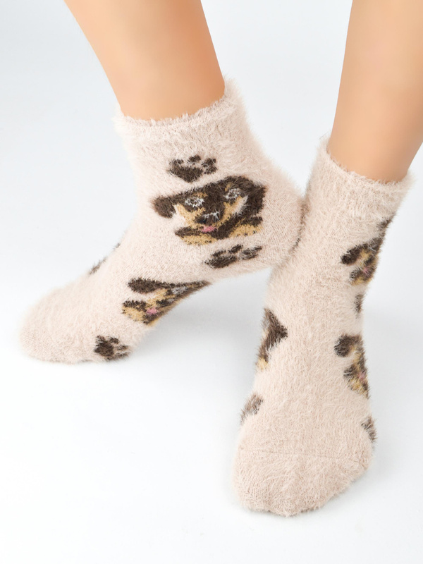 Puchate Skarpetki z pieskiem SP008 jasny beż - Noviti