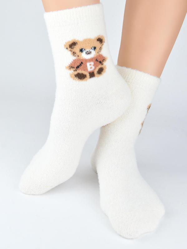 Puchate Skarpetki z zabawnym misiem SP014 ecru - Noviti