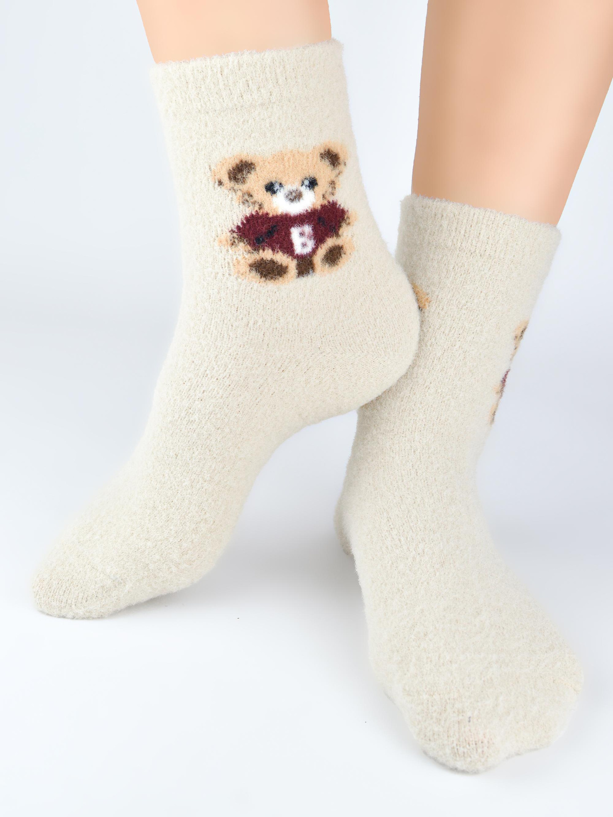Puchate Skarpetki z zabawnym misiem SP014 jasny beż - Noviti