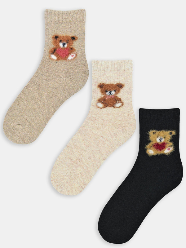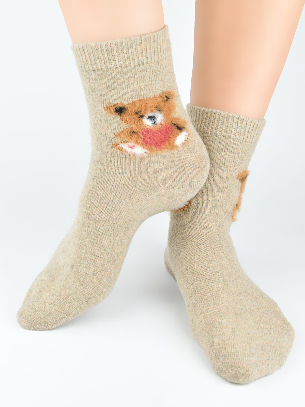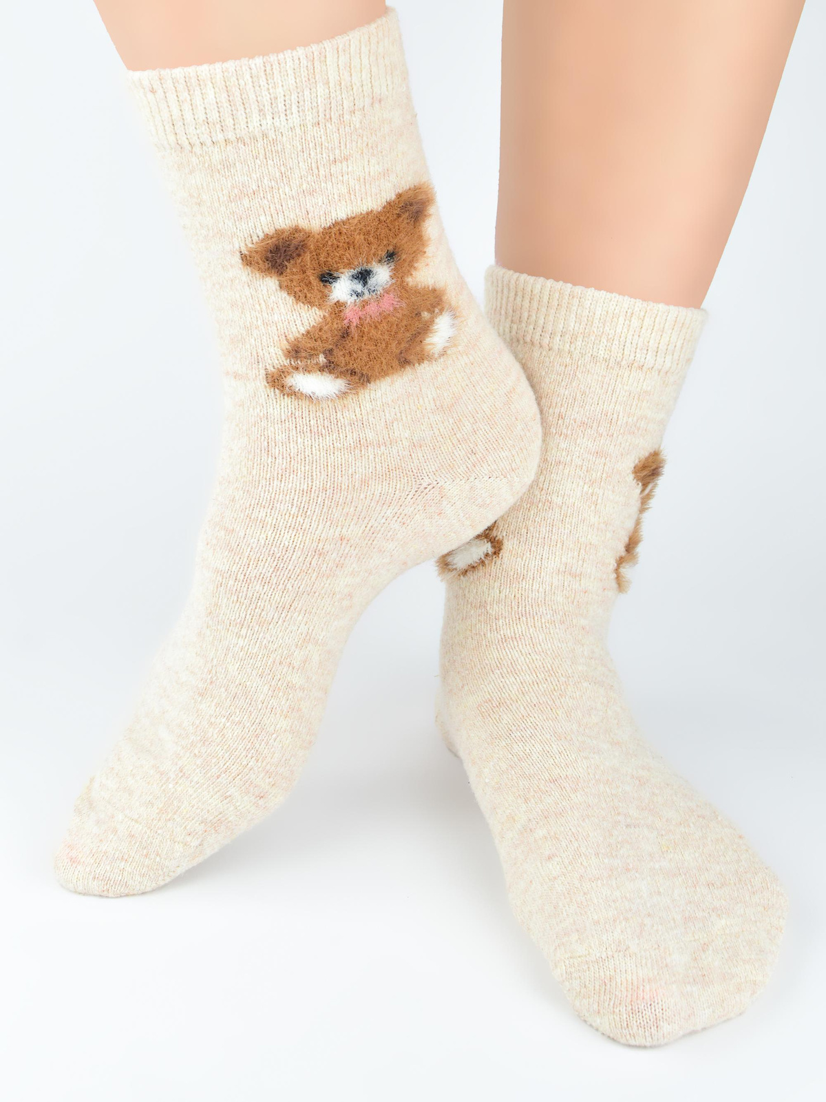 Ciepłe skarpety z prawdziwą wełną miś SW018 mix - Noviti