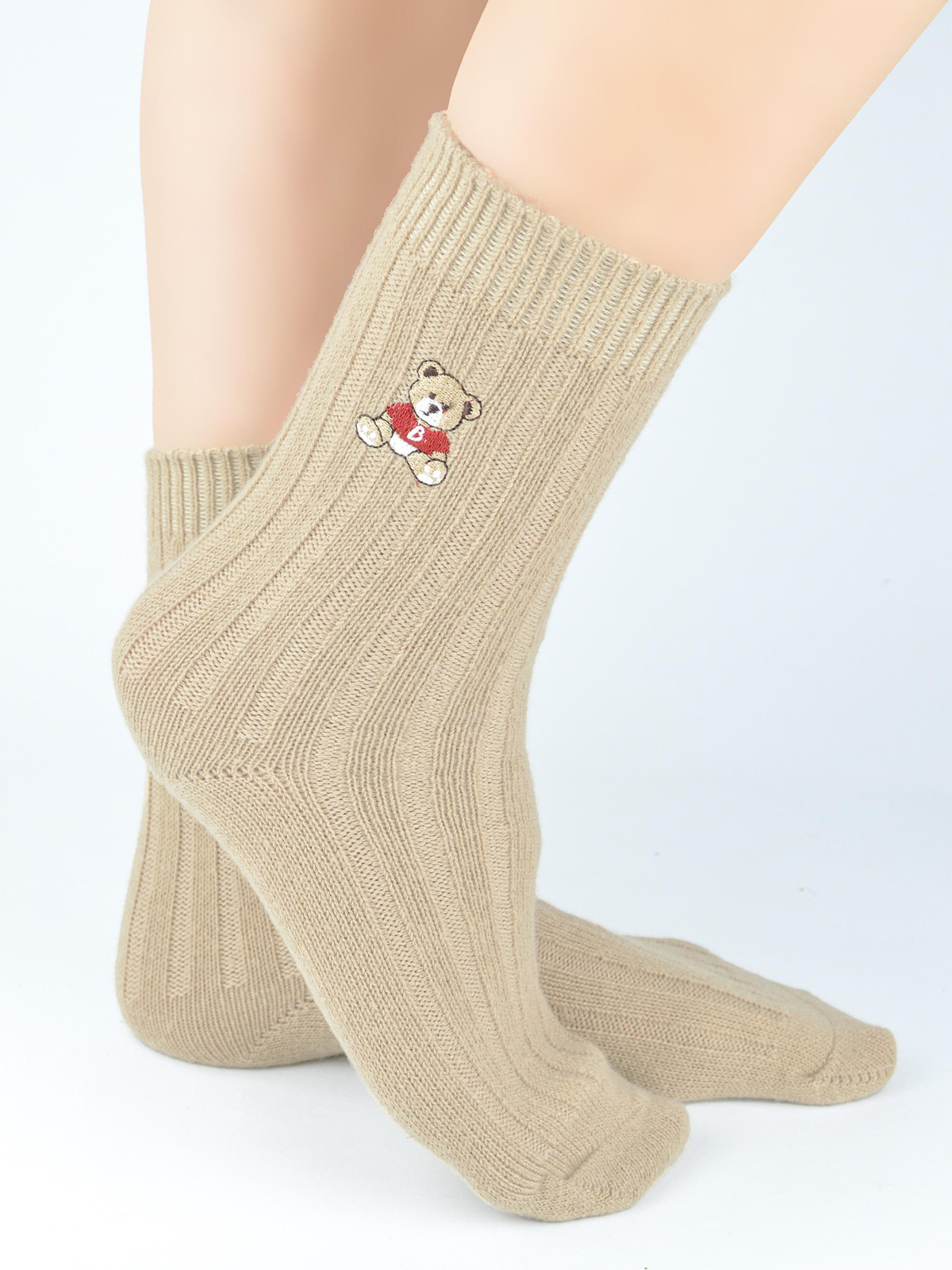 Ciepłe skarpety z prawdziwą wełną miś SW025 beż- Noviti