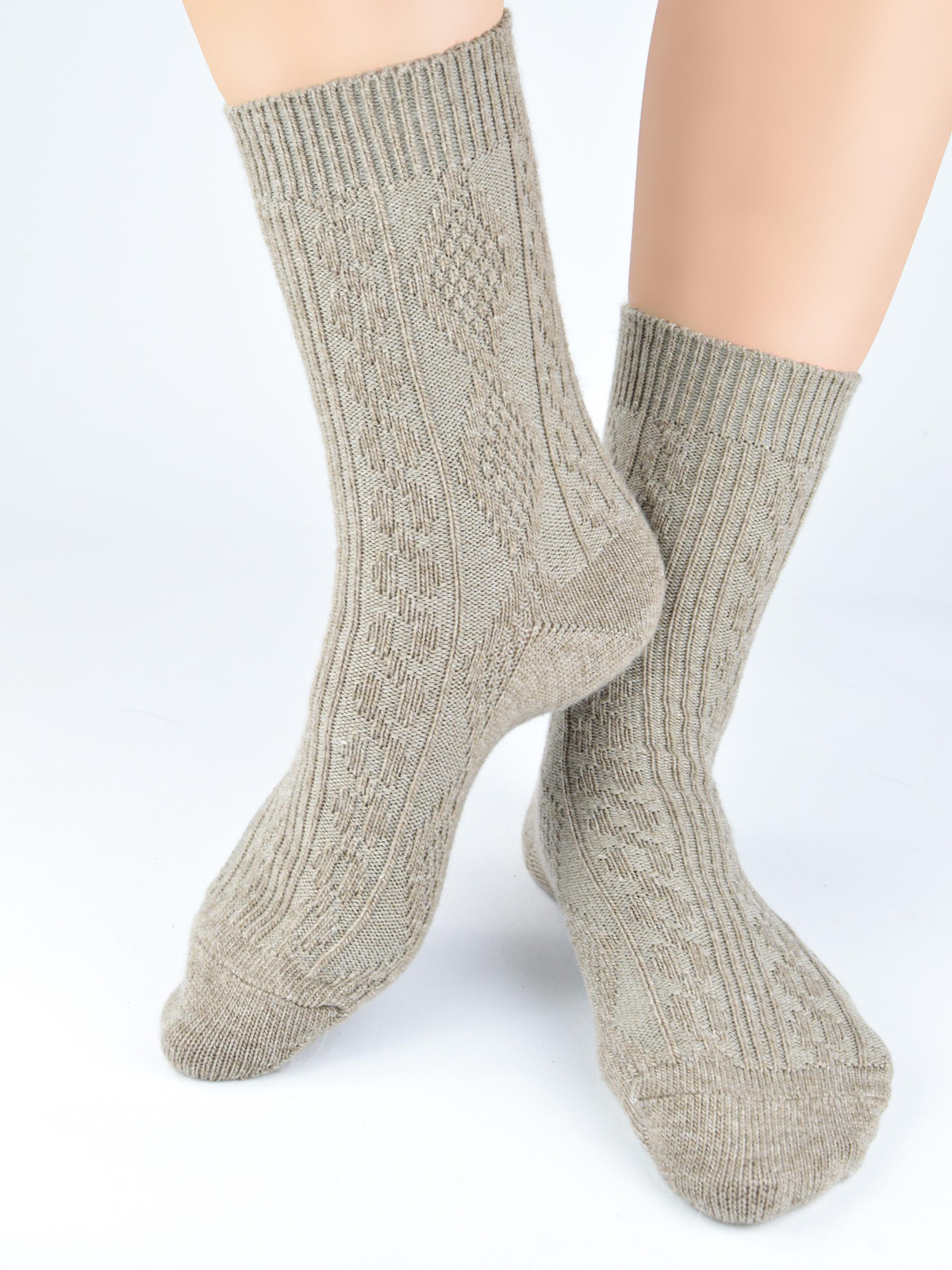 Ciepłe skarpety damskie z wełną Noviti SW 026 wzór warkocz beż