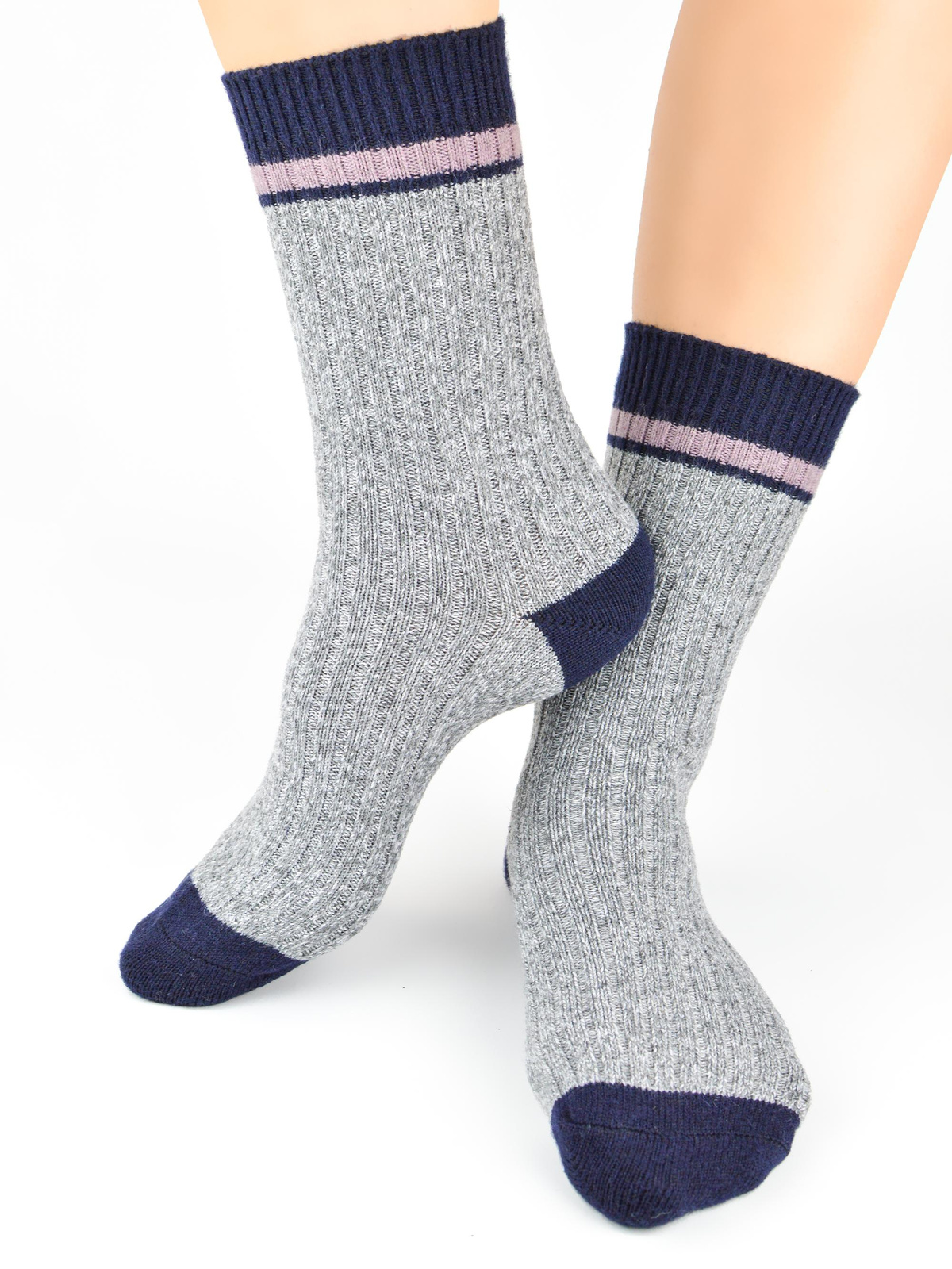 Długie skarpety z prawdziwą wełną SW030 jeans mel - Noviti