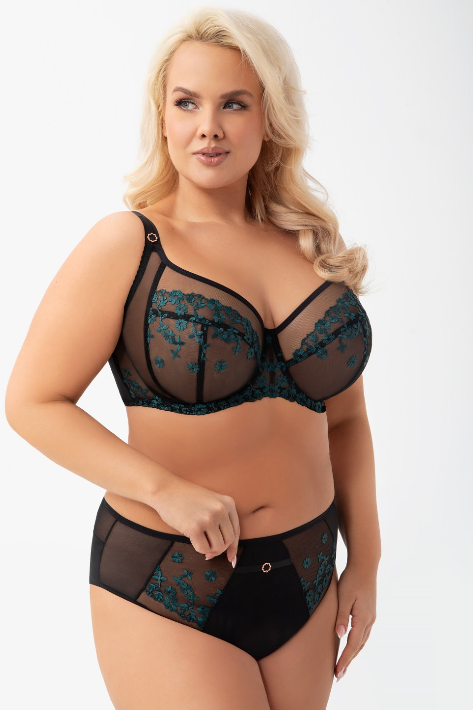 - Eleganckie, zmysłowe figi od Gorsenia. Niesamowite połączenie kolorów- czarne figi z haftem, o pięknym odcieniu turkusu. Dla pełnego komfortu, zakrywają cały pośladek.