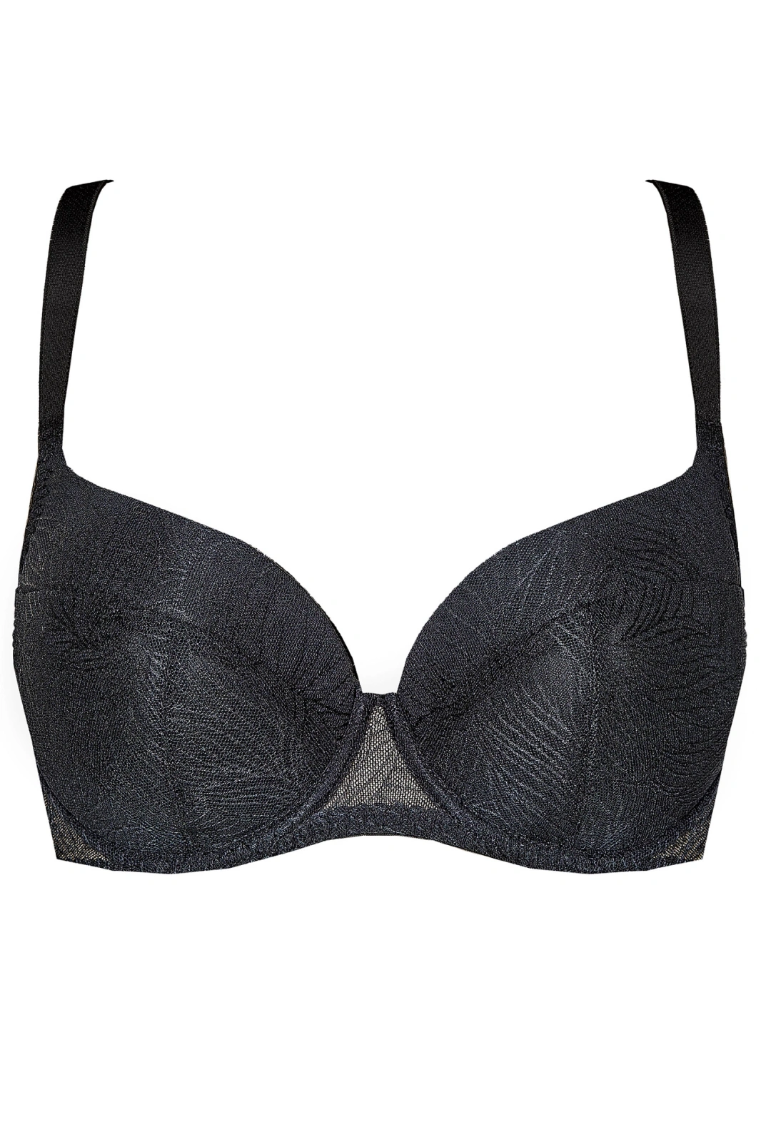 Miski usztywniane, wykonane z pianki gorseciarskiej powleczonej koronką w lekko połyskujący wzór roślinny, Wewnętrzną część misek pokryto bawełną ze standardem OEKO-TEX®, dzięki czemu są przyjazne dla skóry, Tył biustonosza uszyty z koronki, Pionowe fiszbiny boczne stabilizują obwód biustonosza, Model Cate jest nową odsłoną modelu Elise – naszego wieloletniego bestsellera, Biustonosz zaprojektowano i uszyto w Polsce, W celu utrzymania bielizny w dobrej kondycji przez długi czas zaleca się delikatne pranie ręczne w temperaturze 30°C, Modelka ma 180 cm wzrostu i nosi rozmiar 70E.Szczegółowe dane