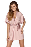 Długi satynowy szlafrok damski De Lafense Classic 798 PUDROWY RÓŻ