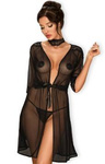 Czarny peniuar z koronkowym chokerem Obsessive Lucita