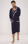 Welurowy długi szlafrok męski De Lafense z satynowym obłożeniem - 773 granatowy